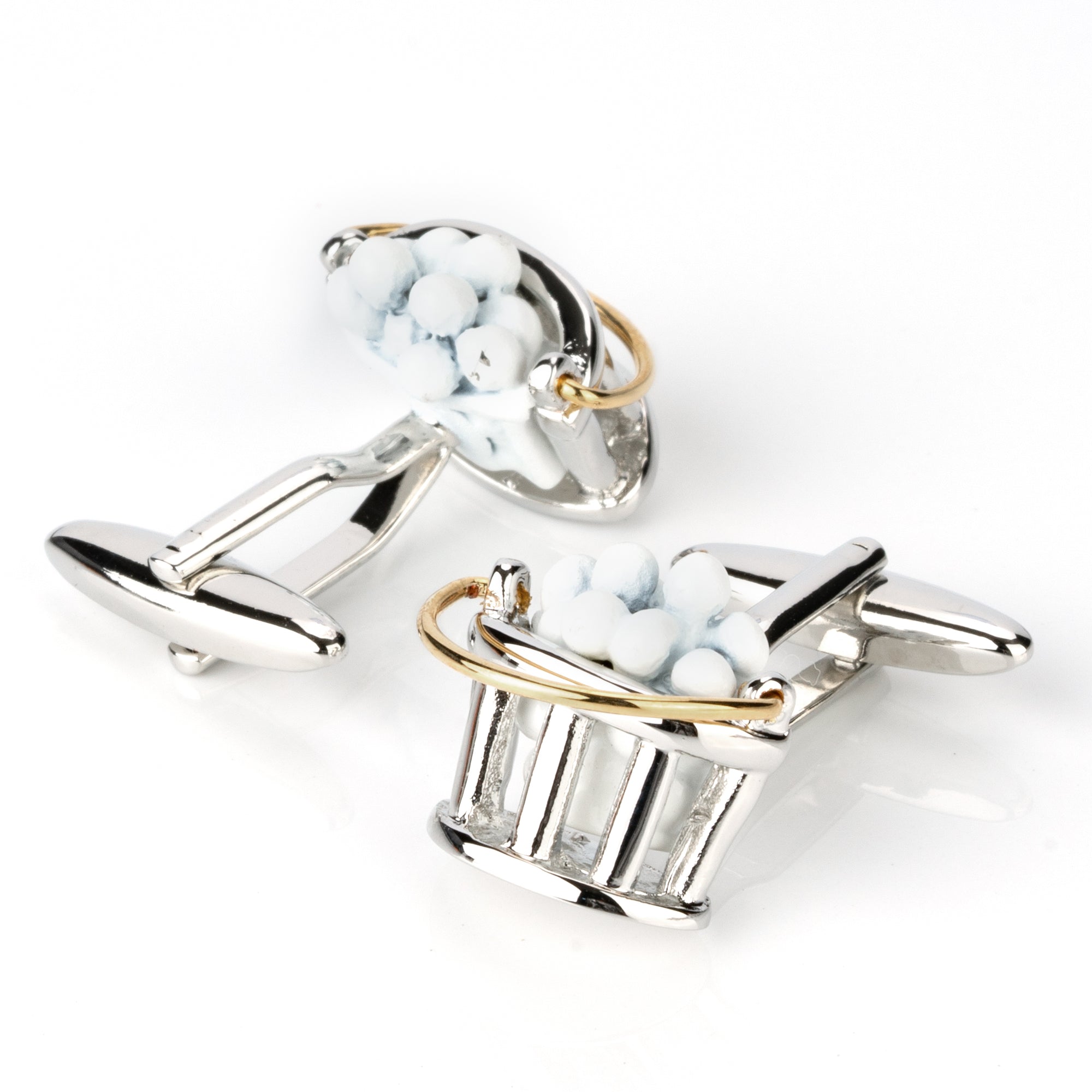 Comes in a stylish gift boxA pair of silver cufflinks made from super-strong material guaranteed to last for years. These Bucket of Golf Balls can be worn on ANY dress shirt with Shirt Cuff Adapters. Excellent addition to your unique cufflink collection and can be a perfect gift- be it for weddings, birthdays or business gifts. Make these novelty cufflinks yours today and be ready to turn heads whilst wearing one.