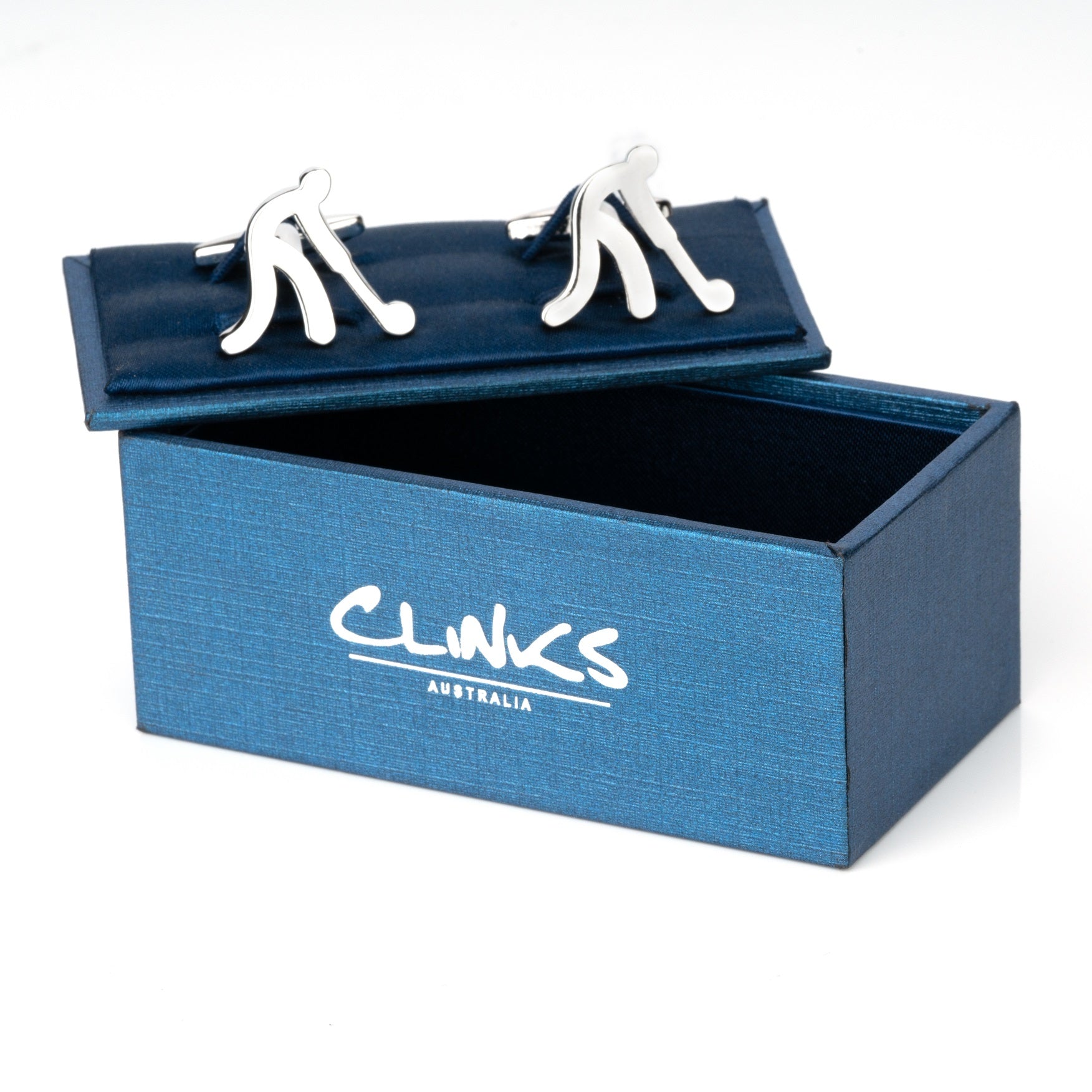Field Hockey Silhouette Silver Cufflinks. Love your Hockey? You'll love these field hockey silhouette silver cufflinks. Featuring a player holding a hockey stick, these cufflinks are simple but elegant and look great on any shirt. Presented in a classy gift box, these silver cufflinks make a perfect present for a hockey player, fan or coach.