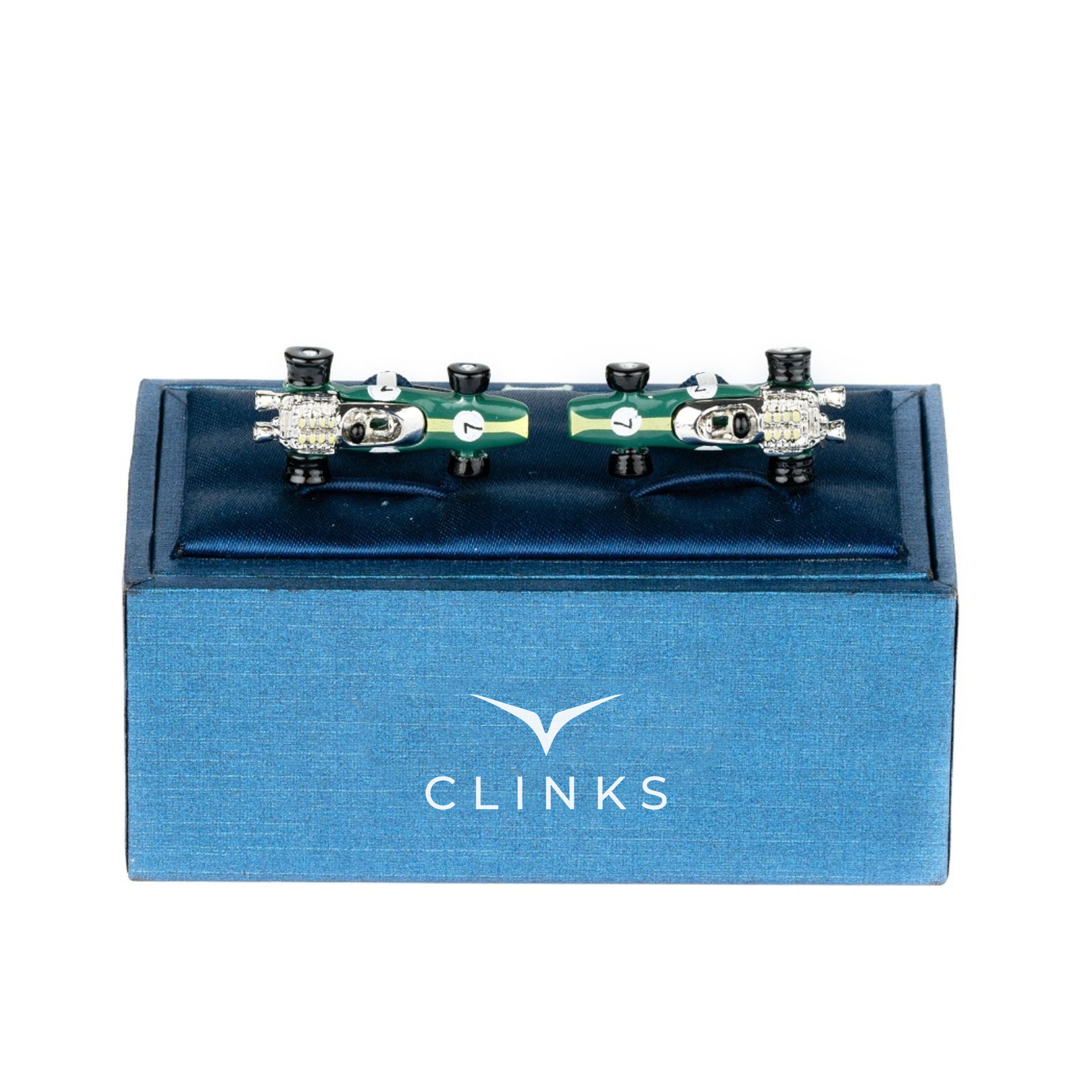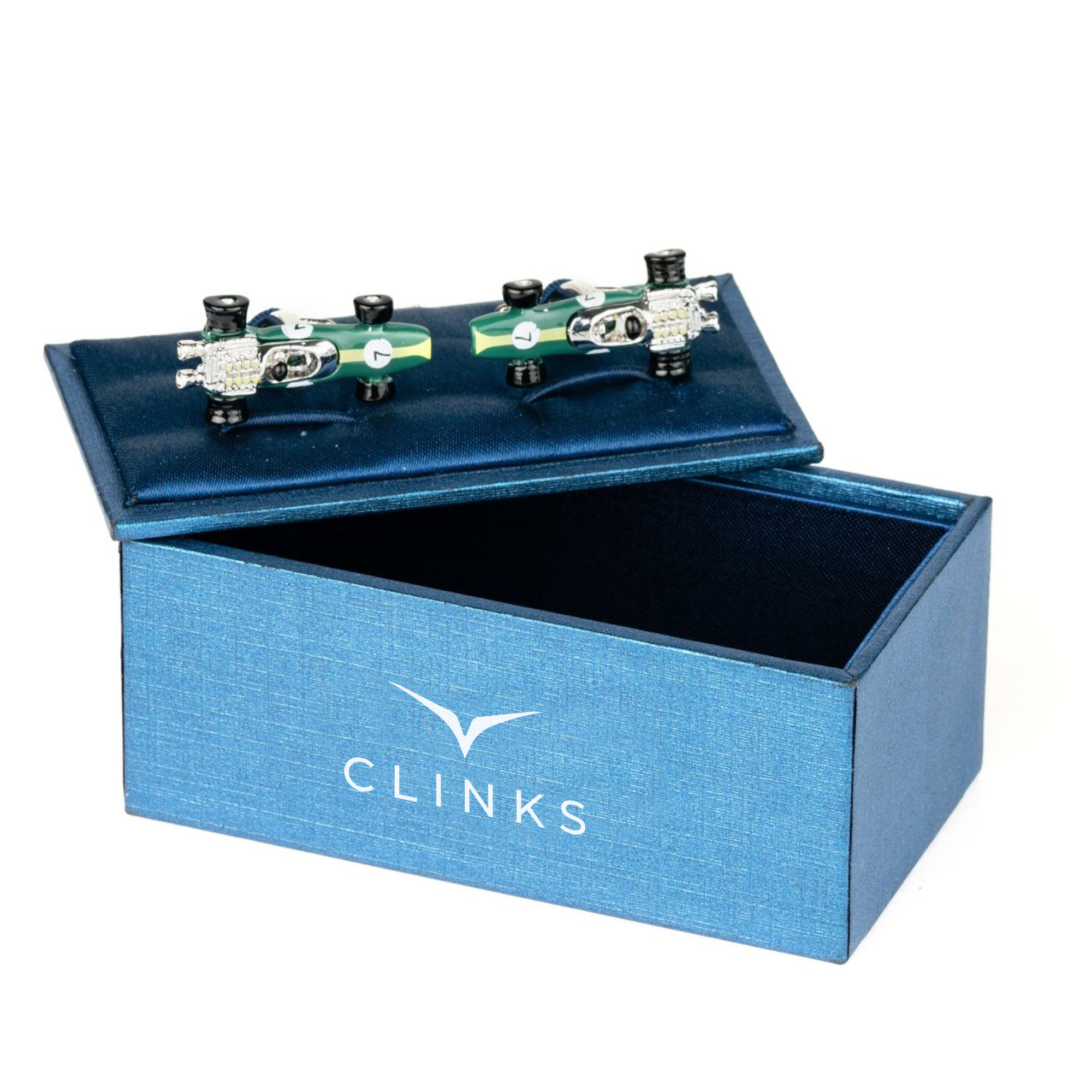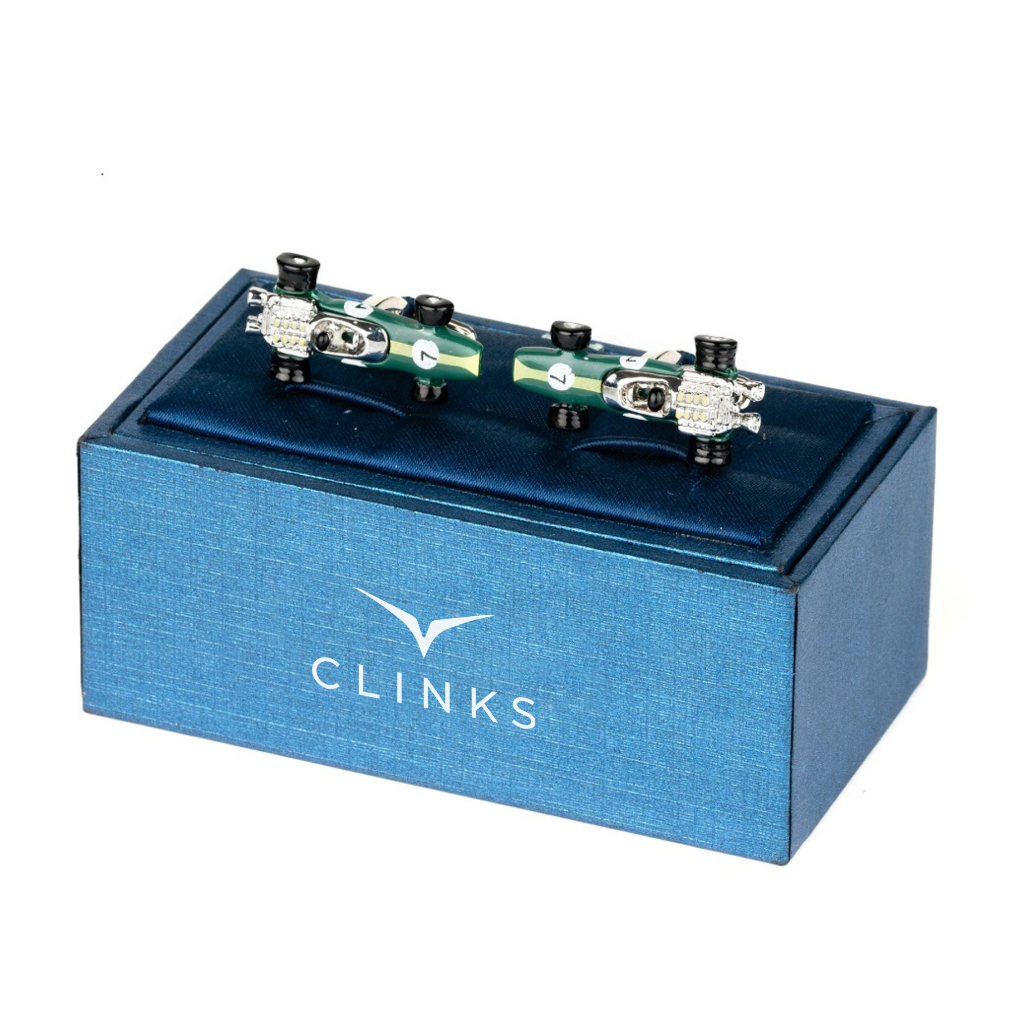 Comes in a stylish gift boxThis beautiful replica of the vintage 1967 Lotus F1 racing car cufflinks will certainly turn heads at your next event. With amazing hand-painted enamel detailing, the little touches make it a perfect accessory for your outfit. These Green Lotus Racing Car Cufflinks can be worn on ANY dress shirt with Shirt Cuff Adapter.