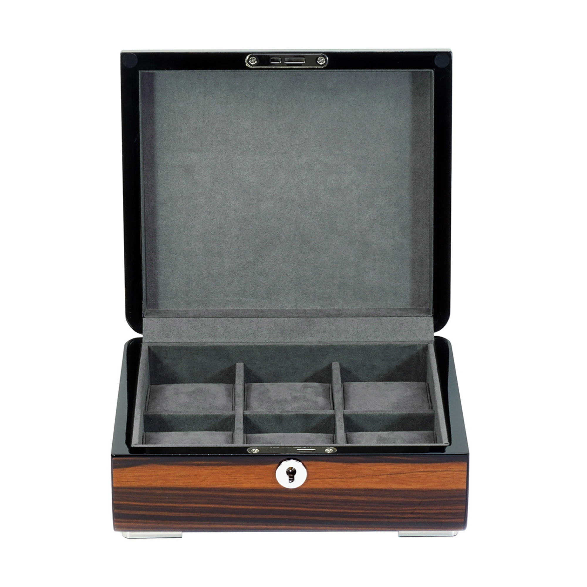 Quick same-day dispatchKeep your watches safe and dust free with the Watch Box for 6 watches in Shiny Wooden Ebony finish. Comes with a lock to safely store your watches.