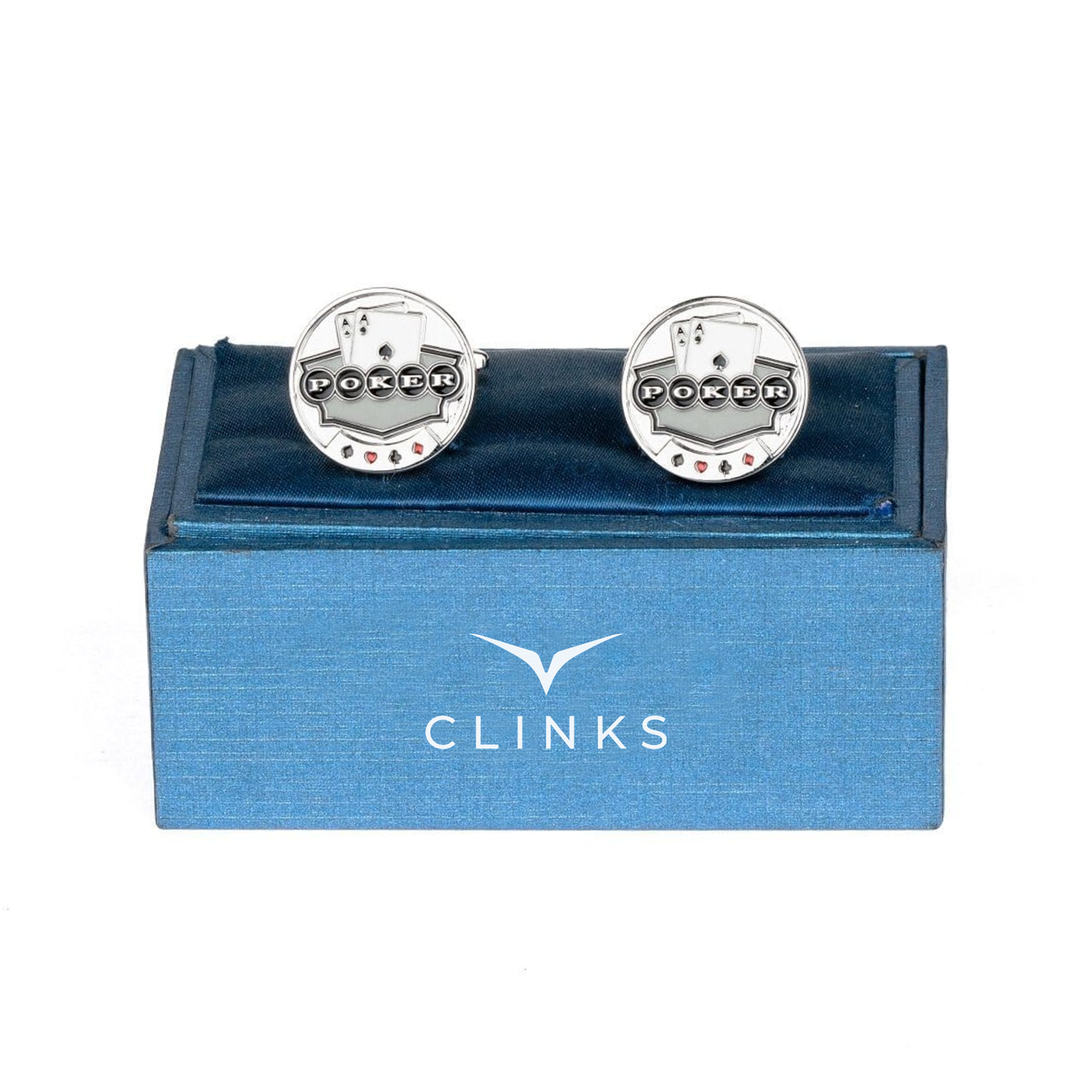 Comes in a stylish gift boxWin a few smiles at your poker game with these stylish Poker Pocket Aces cufflinks. A perfect gift idea for all those gambling lovers out there. These Poker casino chips are detailed in red, black white enamel and are crafted from solid rhodium-plated metal.
