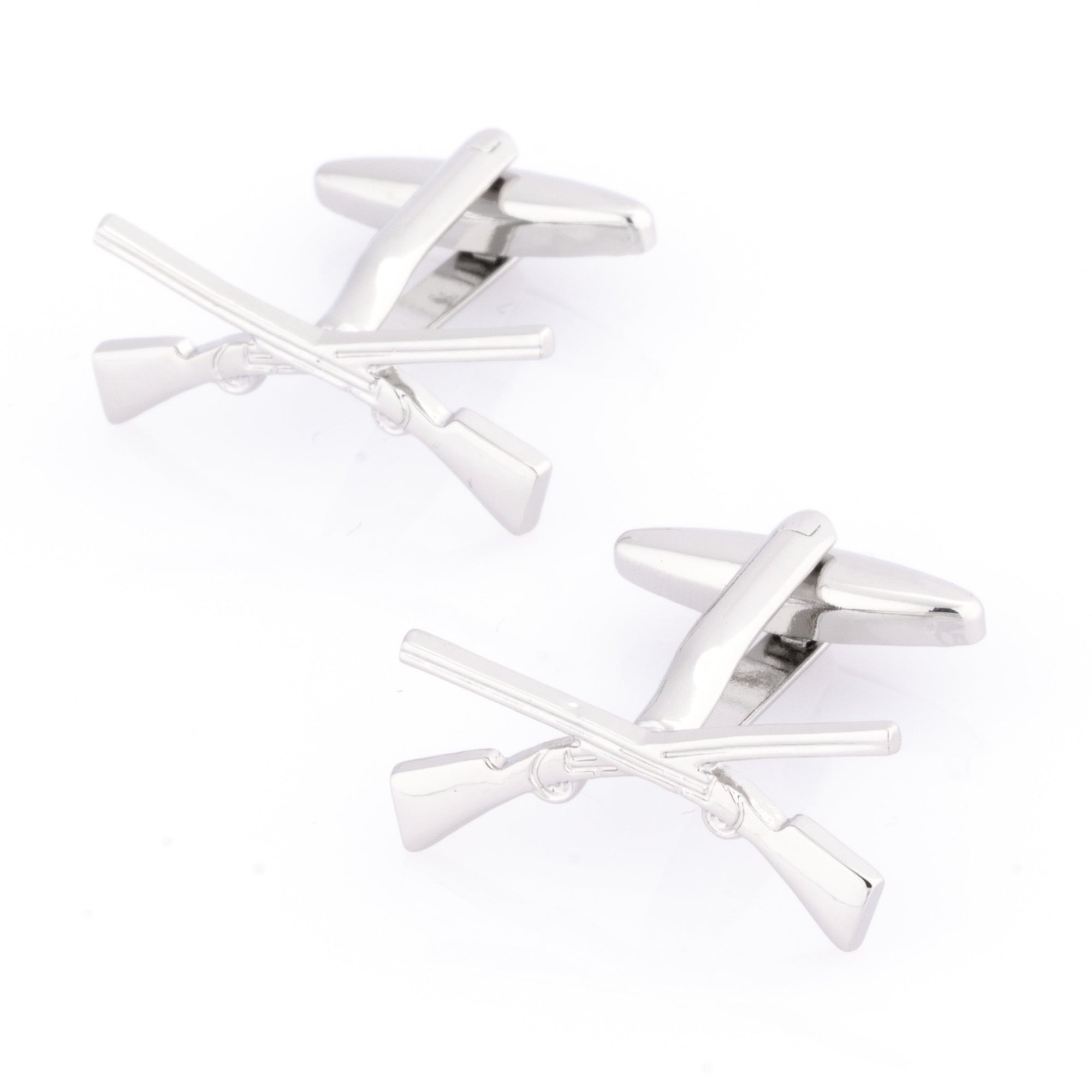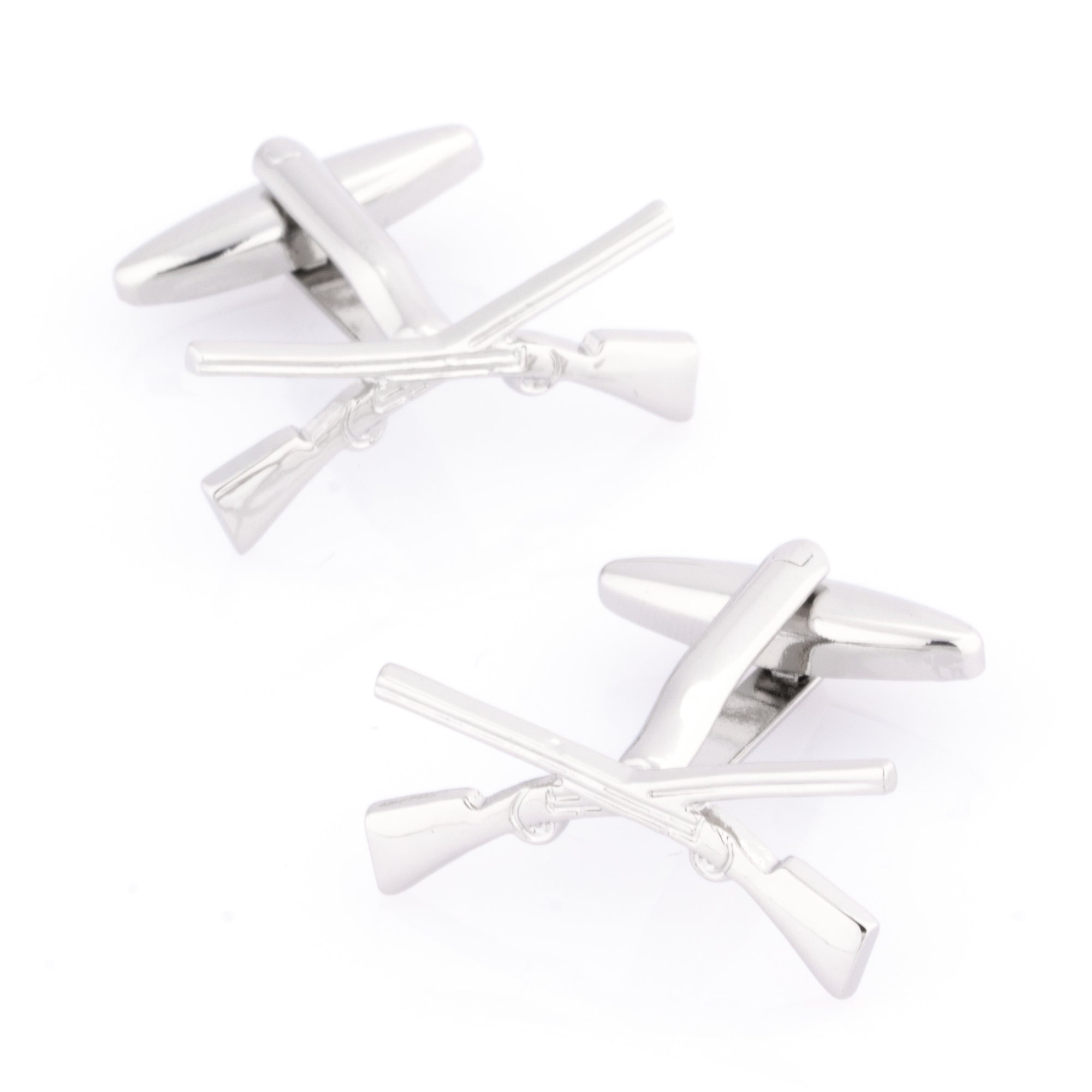 A pair of silver cufflinks made from super-strong material guaranteed to last for years. These Crossed Rifle Cufflinks can be worn on ANY dress shirt with Shirt Cuff Adapters. Excellent addition to your unique cufflink collection and can be a perfect gift- be it for weddings, birthdays or business gifts. Make these novelty cufflinks yours today and be ready to turn heads whilst wearing one.
