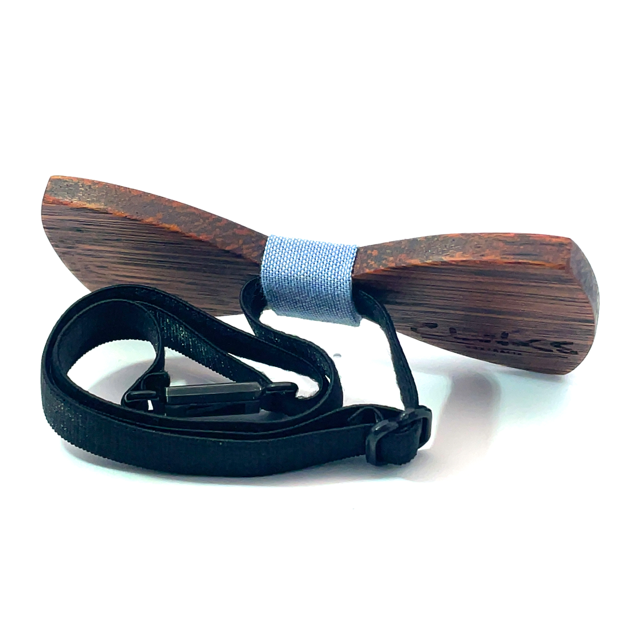Comes in a stylish gift boxThe perfect natural look, a gorgeous wooden bow tie featuring a light blue dotted fabric centre. Handcrafted in solid wood with an adjustable neck strap. A statement piece for someone who loves to set a trend. Perfect style for weddings, formal and funky parties. Presented in a stylish blue gift box.