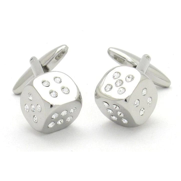 Comes in a stylish gift boxSilver "Diamond" Dice Cufflinks. One from our specialty range, you'll be sure to impress the ladies and intimidate the dealers with these top-quality authentic rhodium-plated silver lucky diamond dice cufflinks, containing real white Swarovski crystal "pips". Whether it's blackjack, poker, or craps that's your flavor, Las Vegas will never look so cool!