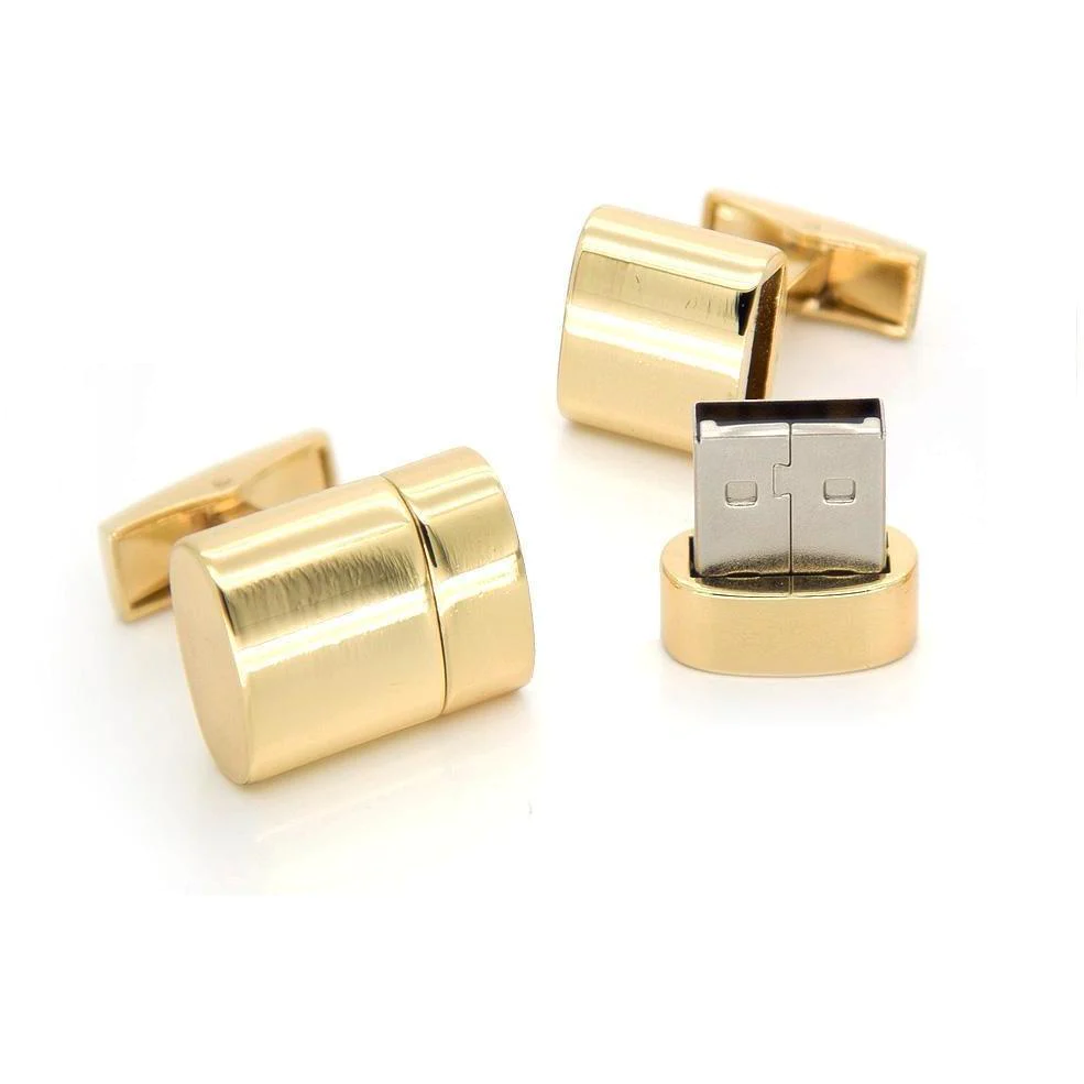 These cool USB cufflinks look like something out of a James Bond film. Each side has an 16Gb USB drive built in, and securely held in place with a magnet. Never forget an important document again! Remember your important files while looking classy and cool! With 16 GB of storage per cufflink, these stunning gold tone oval USB drive cufflinks are perfect for the high flying executive. A magnet secures the drive itself and protects it from damage and the elements. These fashionable and functional cufflinks are the perfect gift idea for anybody who needs to take information on the road with them!